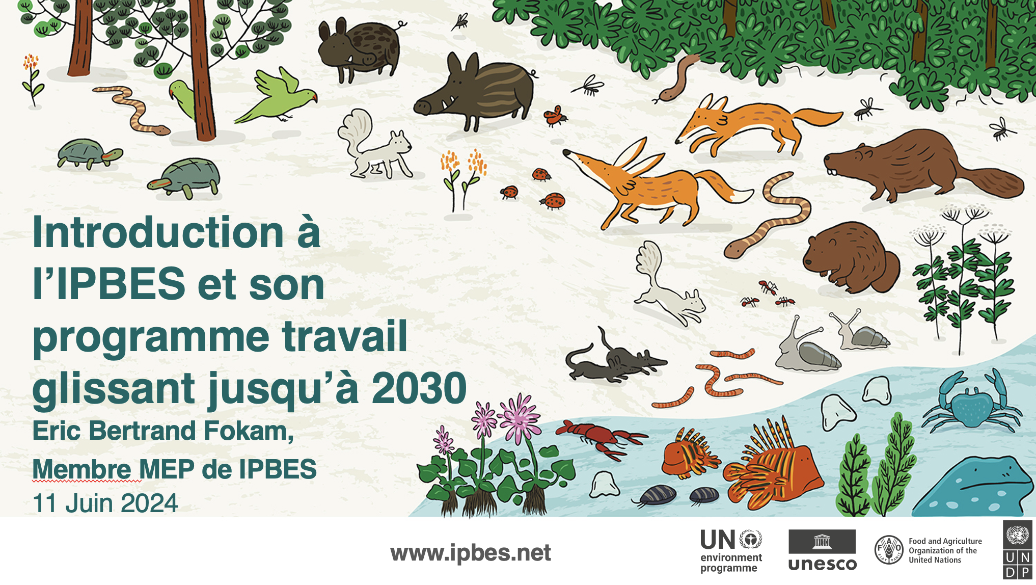 ⬅ Back to Home RESSOURCES Ressources du Trialogue Jour 1 photos Lien de téléchargement Jour 2 photos Lien de téléchargement Jour 3 photos Lien de téléchargement Forêt Banco photos Lien de téléchargement Excursion cacao Azaguie photos Lien de téléchargement Document de Référence Lien de téléchargement Document d'Action Lien de téléchargement David Obura, discours d'ouverture Video Interviews de rue avec les habitants Partie I Partie II Solutions inclusives pour les espèces exotiques envahissantes et la conservation durable de la faune et de la flore Présentation PowerPoint IPBES: Evaluation de l'utilisation durable des espèces sauvages Présentation PowerPoint IPBES: Rapport d’évaluation des espèces exotiques envahissantes et de la lutte contre leur proliferation Présentation PowerPoint Introduction à l’IPBES et son programmetravail glissant jusqu’à 2030, Eric Bertrand Fokam Présentation PowerPoint Delta du Fleuve Sénégal: Valorisation Artisanale du Typha Australis par les Communautés Locales Présentation PowerPoint Experiences de l’ONG «Femmes Volontaires Debout pour le Développement Durable», Abra A. Amelamedi Présentation PowerPoint Renforcement de capacités des experts enbiodiversité et services écosystémiques enAfrique de l'Ouest, du Centre et de l’Est, CABES Présentation PowerPoint Valorisation du Typha: Construction de Bâtiment Écologique avec le Typhas Australis, M. Mbaye Présentation PowerPoint Autres ressources Site Internet de BES-Net Subsidiary Body on Scientific,Technical and Technological Advice (SBSSTA 25) Français Anglaise CABES Democratic Republic of the Congo: Biodiversity conservation and sustainable forest management (BGF) Utilization of IPBES assessment outcomes in national policy making (Day 1) Utilization of IPBES assessment outcomes in national policy making (Day 2) IPBES Site Internet de l'IPBES Français Anglaise Anglaise ONet Site Internet de ONet Indigenous and local knowledge Français ⬅ Back to Home TopBuilt with Shorthand